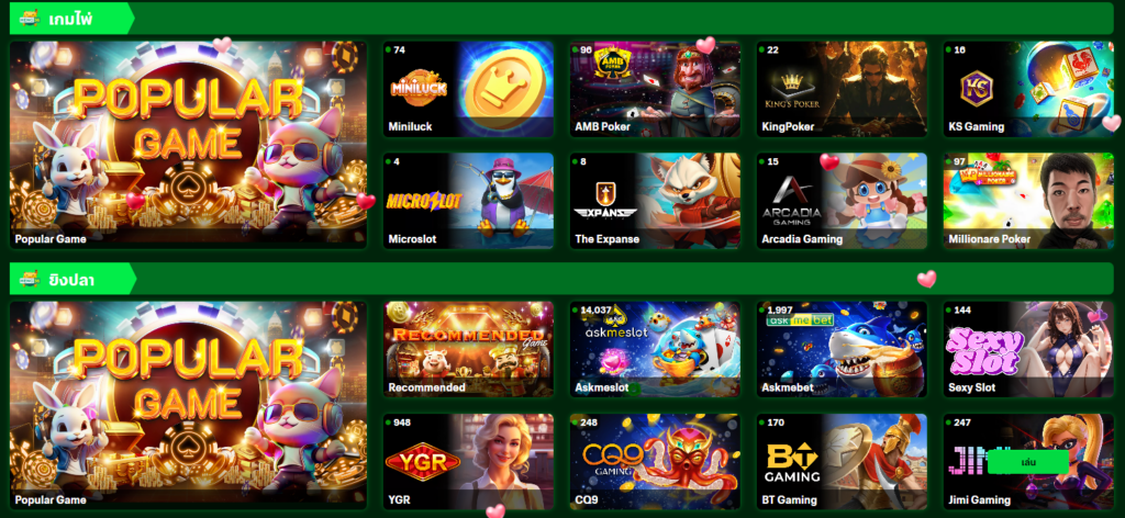 ตอบ : หลักๆ คือเกมสล็อตจากหลายค่ายดังครับ นอกจากนั้นมักจะมีคาสิโนสด (Live Casino) เช่น บาคาร่า, รูเล็ต หรือเกมยิงปลา ให้เลือกเล่นด้วย